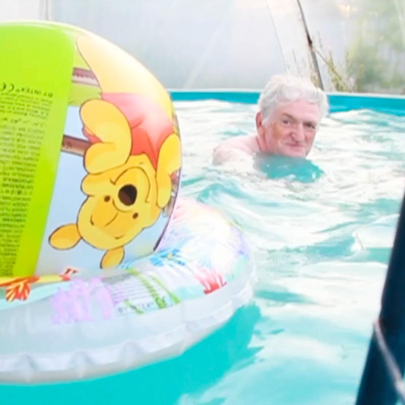 Wenn man kein großes Schwimmbecken bauen kann, aber trotzdem jeden Tag schwimmen möchte, muss man erfinderisch sein. Eine Kurzdokumentation über das Älterwerden.
